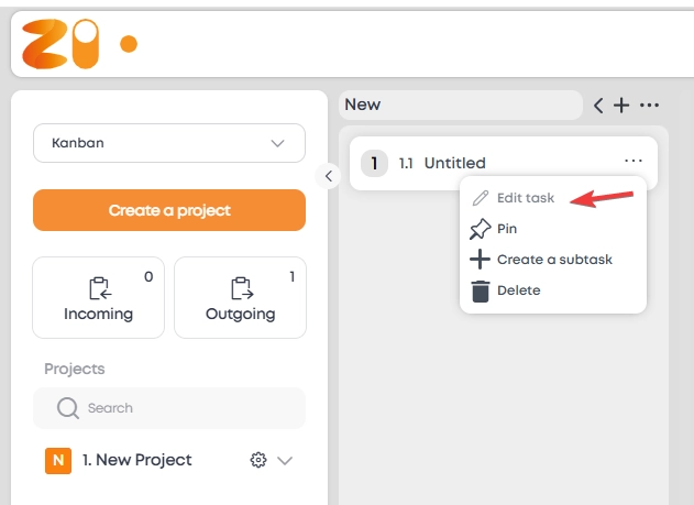 Has been just created: new task will appear in "New" column.
